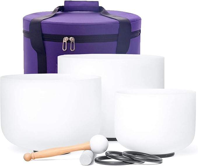 Hye-eun 3pcs 8"B 10"F 12"C Frosted Quartz Crystal Singing Bowl Set 432hz with Free Carry Bag Mallets & Rubber for Sound Healing Bath Keep Balance Therapy Meditation Yoga