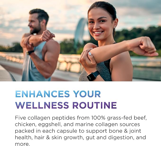 - All-in-one super collagen blend - our bioavailable hydrolyzed collagen peptide pills feature a blend of 100% grass-fed bovine, chicken, eggshell and marine collagen sources, including Types I, II, III, V & X.