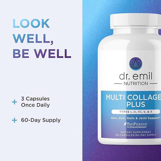 DR. EMIL NUTRITION Women's Multi Collagen Pills | Collagen Supplements to Support Hair, Skin, Nails, & Joints | Hydrolyzed Collagen Supplements Types I, II, III, V & X | 180 Capsules