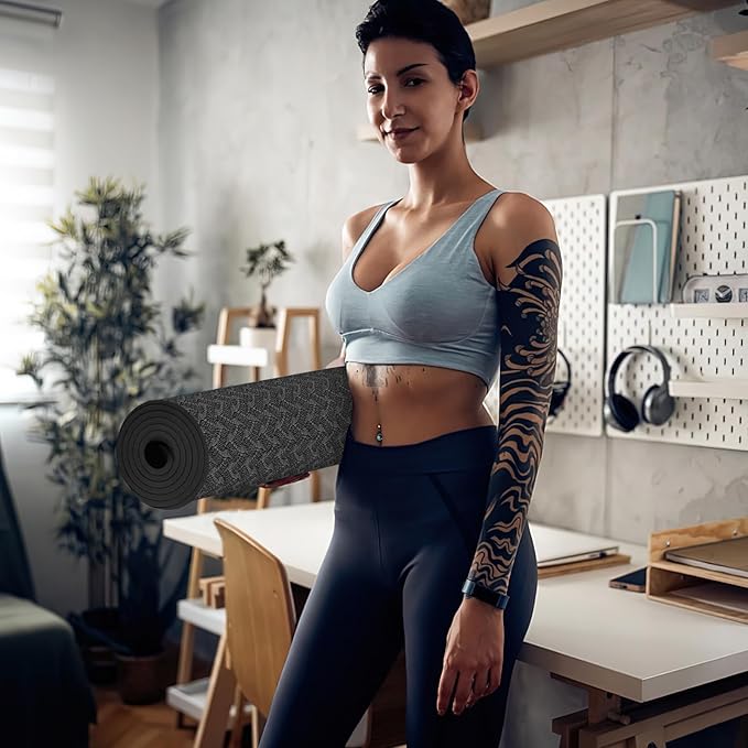 - 【Slip-resistant design and double-layer tear resistance】The 1/3-inch thick yoga mat has a double-sided adhesive non-slip texture that provides excellent traction and excellent grip, which is most suitable for practicing various forms of yoga. It is non-slip on wooden floor, tile floor and cement floor, and can be stretched repeatedly, providing excellent durability and cushioning.