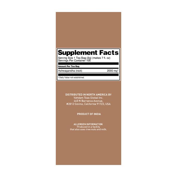 - FRESHLY SOURCED FROM THE PREMIUM PLANTATIONS IN INDIA - Embrace the powers of nature with Ashwagandha Tea. Each box contains 100 individually wrapped tea bags, ensuring freshness with every cup.