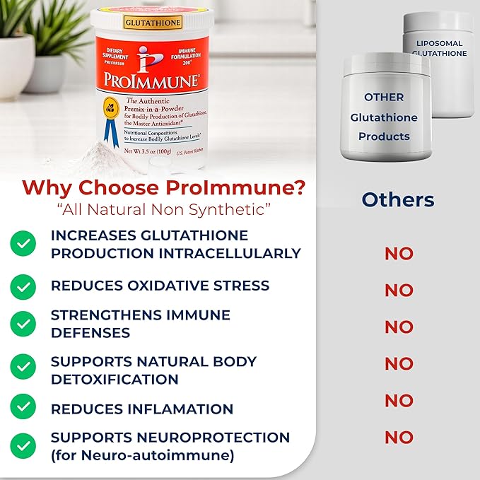 - Breakthrough Cellular Approach: When compared head-to-head with both synthetic glutathione and NAC supplements in studies, ProImmune's natural approach proved significantly more effective; This makes perfect sense when you consider basic cellular biology - your cells are designed to produce and use glutathione intercellularly