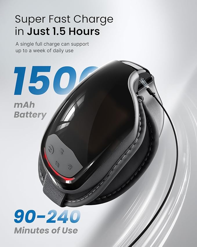 - Bluetooth Compatibility & Fast Charging: Eyeris 3 Eye Massager features Built-in white noise music that reduces anxiety and can be turned off at your own will. Enjoy Bluetooth music connectivity and a soothing ambiance. The 1500mAh rechargeable battery Fast charges fully in just 1.5 hours, with a red light LED indicator showing the charging level. Experience the convenience of using this eye massager