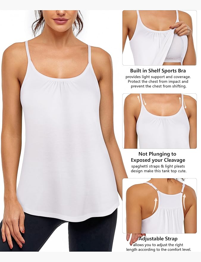 - √Built in Bra: Designed for low impact. Shelf bra tank tops built in removable pads gives a comfort feel, provides light support and coverage. You can also take off the pads and wear a sports bra under for high impact.
