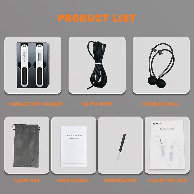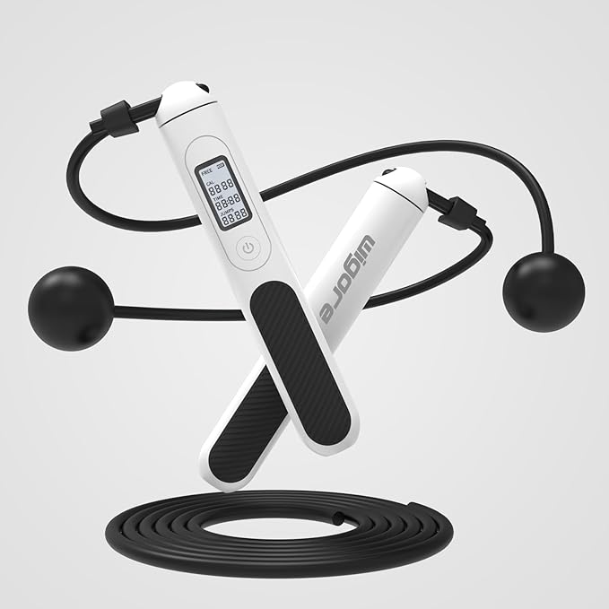 • 【LED HD Display & Ergonomic Handles】: Wigore jump rope are unique design for fitness are equipped with Ergonomic Handles that is made from friendly environmental ABS and non-polluting silicone material. ergonomic silica gel non-slip grip. Non-slip, non-toxic, and tasteless for safe use. The comfortable hand grip reduces fatigue and makes exerting force easie,Also,the main handle is embedded with a backlit LCD display that provides users a clear view of your workout