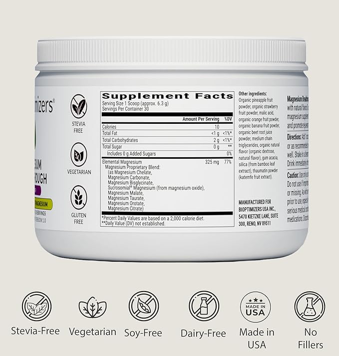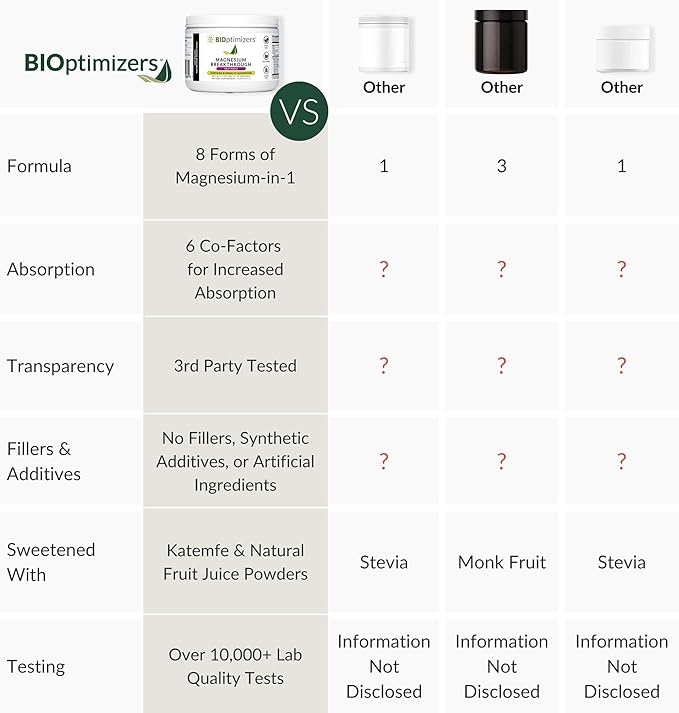 - Optimized for Bioavailability: With bioavailable forms, such as Magnesium Citrate, Glycinate, and Malate, the BIOptimizers Magnesium Breakthrough Drink is formulated for effective absorption and whole-body magnesium support