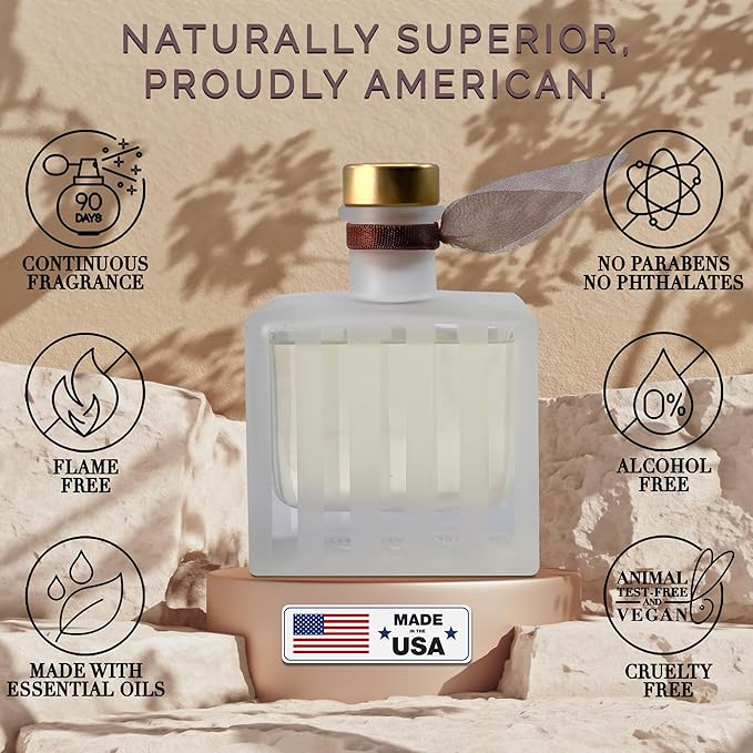 - BOUTIQUE QUALITY, AMERICAN-MADE – Handcrafted in small batches by our family-owned perfumery in the USA, each reed diffuser is made with clean ingredients and long-lasting fragrance. We never use harsh chemicals—just premium, room-filling scent that looks as good as it smells. A safe, stylish way to elevate your space with artisan care.
