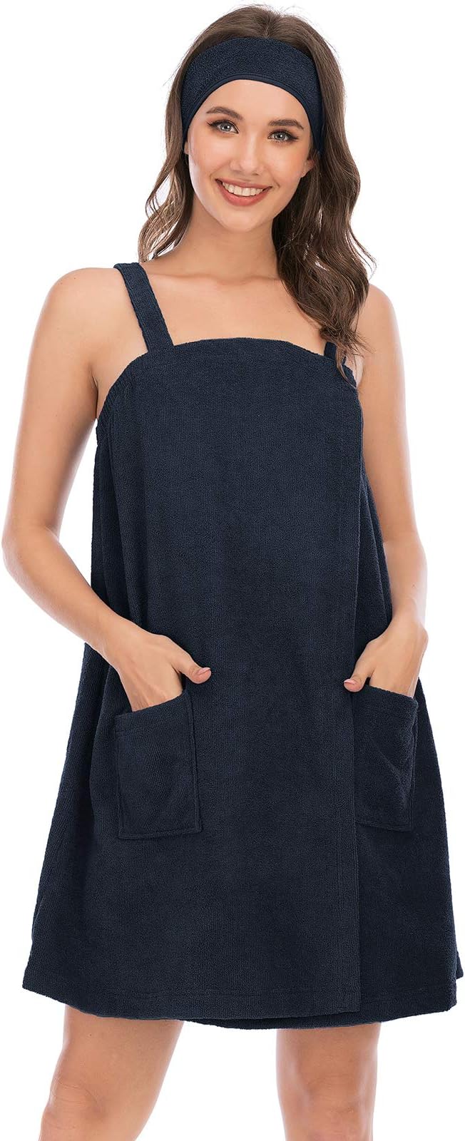 - ♦ LUXURIOUS BODY WRAP ROBE: Perfect for bath, shower, spa. Suitable for gym, dorm, pool, sauna, travel and other lounging time. This absorbent fabric with terry loops lets the robe absorb water for a perfect wash and dry quickly. Nice gift for friend or family you love.