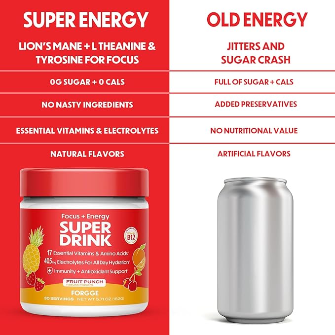 - 5-in-1 Energy Drink Mix - Forgge Energy Drink Powder combines natural ingredients that deliver sustained energy, essential electrolytes, immunity support, amino acid support and help you focus. All in a sugar-free, zero calorie delicious drink.
