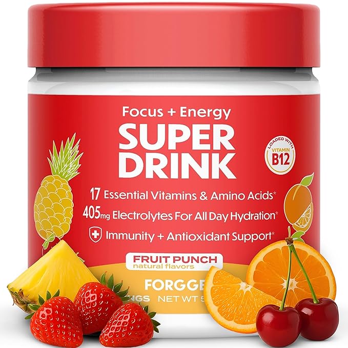 Forgge Healthy Energy Drink Powder Mix - Clean Caffeine + B12, B6, C & D Vitamins - Sugar Free Energy Drink Powder with Electrolytes, Amino Acids, Antioxidants, Lions Mane - Vegan, Keto-Friendly - 30 SVG, Fruit Punch