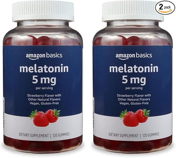 Amazon Basics Melatonin 5mg, 120 Gummies (2 per Serving), Strawberry (Previously Solimo) (Pack of 2)
