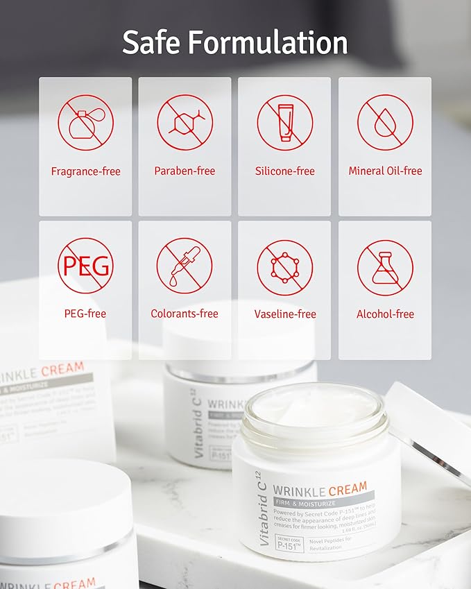 - FRAGRANCE-FREE INTENSIVE HYDRATION: This fragrance-free formula is crafted for deep skin hydration without any irritants, making it ideal for sensitive skin. With a luxurious, creamy texture, Vitabrid C12 Wrinkle Cream provides long-lasting moisture and nourishment, leaving skin feeling velvety smooth and rejuvenated.