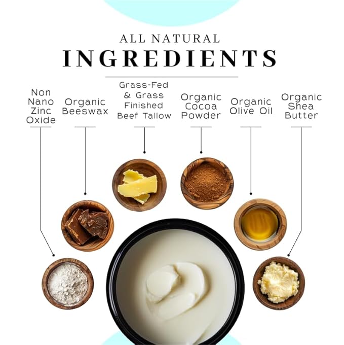 - Works from Head-to-Toe - This beef tallow mineral sunscreen can be applied from head to toe to protect your skin; infused with grass fed beef tallow and non-nano minerals, this zinc face cream provides a chemical-free barrier against the sun