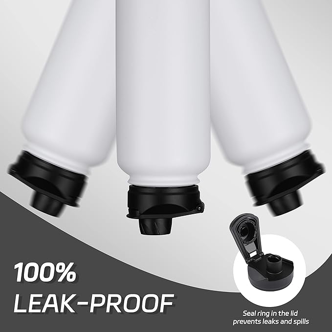 - Spout lid & straw lid: 1 flip-up straw lid, 1 easy-twist spout lid, you can drink on the go without spilling, and don't worry get wet and putting it in your bag; Easily fill your water bottle with ice and clean it through the wide mouth opening