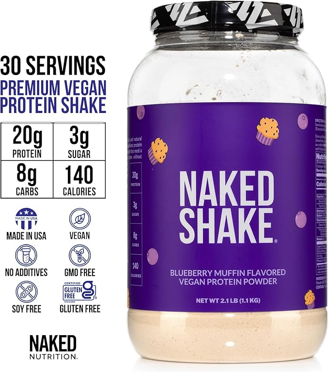 - SUPERIOR PLANT PROTEIN: Dairy-Free and vegan-friendly – made from yellow split peas grown in the USA and Canada. Blueberry Muffin Naked Shake offers a complete amino acid profile, making it the ideal source of fruit flavored protein powder.