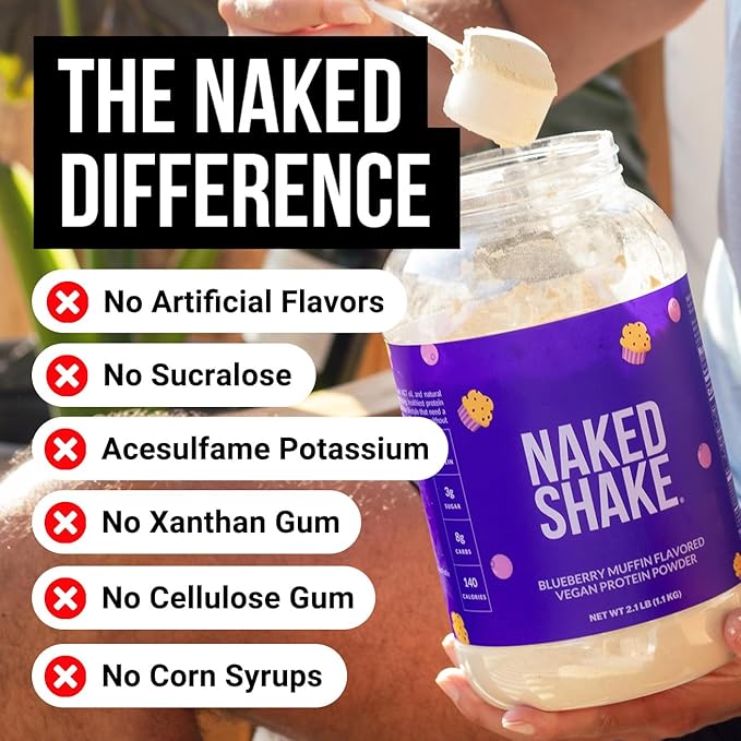 - BLUEBERRY MUFFIN PROTEIN SHAKES: Use Naked Shake to supplement your protein intake without compromising on quality. Just mix our blueberry protein powder with water and enjoy a tasty protein shake while you’re on the go.