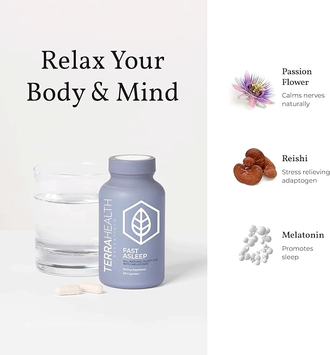 Terra Heath Essentials Fast Asleep - Sleep Support, Helps with Sleeplessness & Restlessness - All Natural, 30 Day Supply