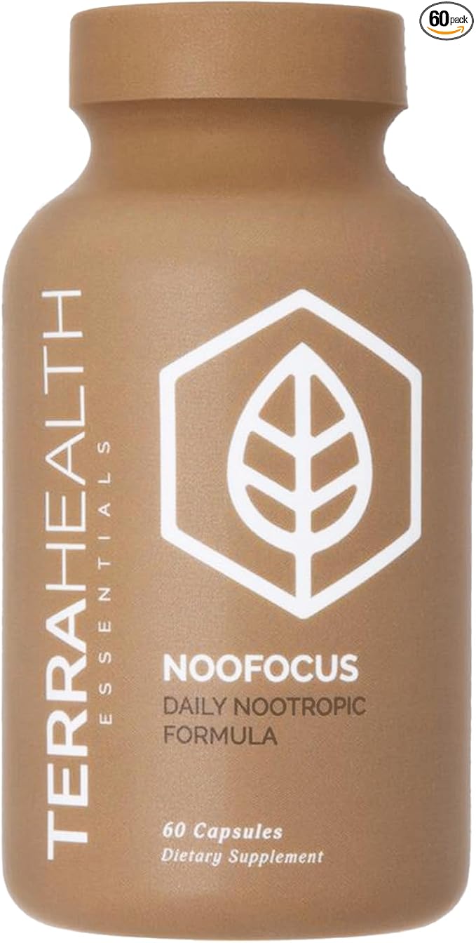 Terra Health Essentials NOOFOCUS - Nootropics Brain Support Supplement with Adaptogenic Mushrooms, Alpha-GPC, Gotu Kola, L-Theanine for Focus & Memory - All Natural, 30 Day Supply