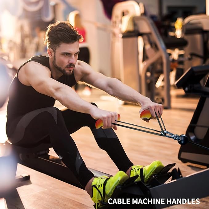 - [WIDELY USED] This exercise machine handle grips is suitable for cable machines, pull-up bars, barbells, rowing machines, flat-pull machines, resistance bands, Pilates reformers, weight pulleys, functional training equipment, chair gym, home gym and so on. The lightweight product comes with a small bag so you can carry it anywhere. Portable and easy to store.