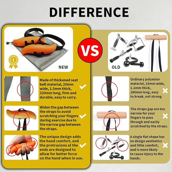 - [EASIER & SAFER GRIP METHOD] This resistance band handles provides a safer method for achieving good exercise in grip posture, with improved grip size and shape, making it easier for you to grip and avoiding hand injuries during exercise. No more wrist pain from repetitive lifts or deep squats. The more natural grip position reduces hand stress and friction injuries.