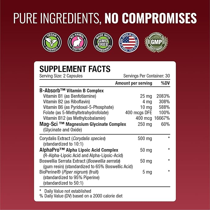 Approved Science Sciaticasyl - Optimal Sciatic Nerve Support - B Vitamins, Magnesium, Alpha-Lipoic Acid, BioPerine - Vegan - 360 Capsules