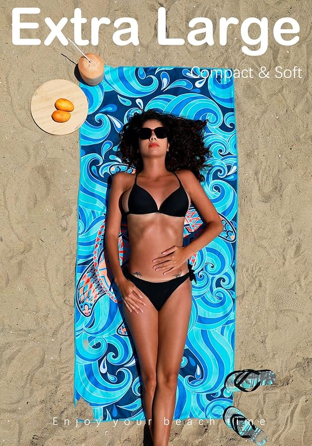 - SAND FREE AND EXTRA LARGE: The microfiber beach towels are designed to repel sand, making them the ideal choice for a day at the beach. They are generously sized to provide ample coverage and prevent sand from getting on your skin or clothes, ensuring a comfortable and enjoyable experience