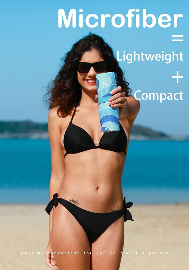 - LIGHTWEIGHT AND PORTABLE: The microfiber beach towels are made of ultra fine microfiber material that is incredibly thin and lightweight. They come with a convenient carrying strap that makes it easy to take them with you wherever you go. When folded, they are as small as a mobile phone and can easily fit in your pocket or beach bag