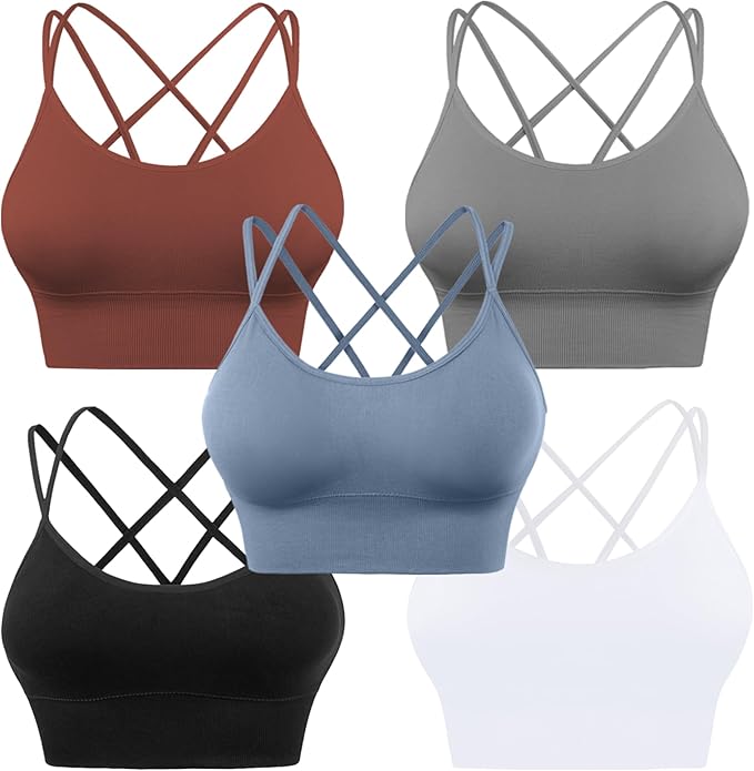 - ☀Cute Crisscross Design: These crisscross althletic bras with strappy back style always keeping your perfect shape. Strappy bralettes look very beautiful with high waist leggings, workout pants or the top with high waisted jeans and accessories as well!