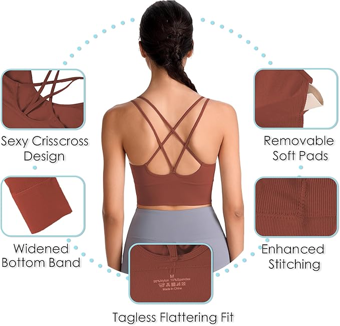 • ☀Cute Crisscross Design: These crisscross althletic bras with strappy back style always keeping your perfect shape. Strappy bralettes look very beautiful with high waist leggings, workout pants or the top with high waisted jeans and accessories as well!