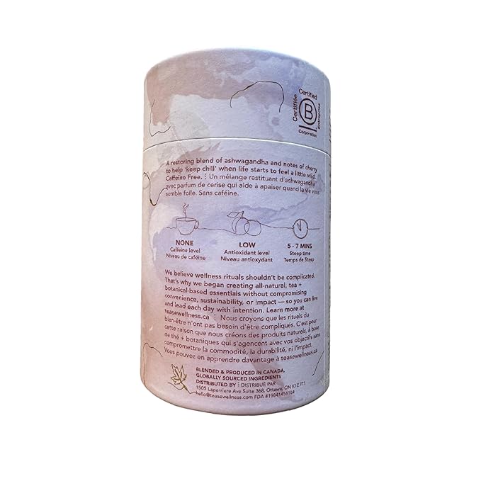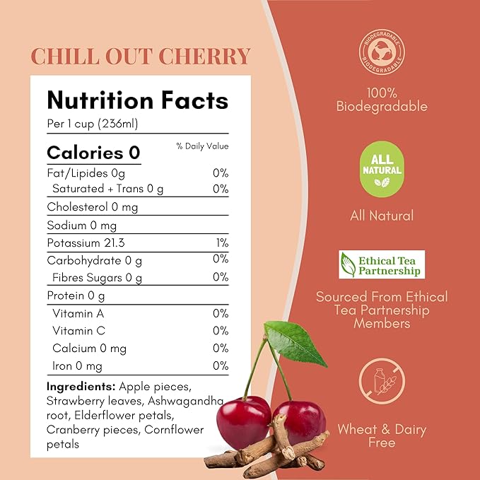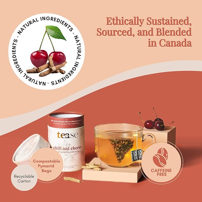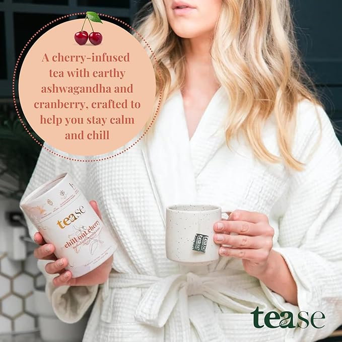 Tease Tea Stress Relief Tea - Chill Out Cherry Ashwagandha Herbal Tea, Anxiety and Calming Tea Made with Organic Ashwagandha, Apple, Cranberry, Elderflower Petals, and Strawberry Leaves for a Chill and Distressing Drink
