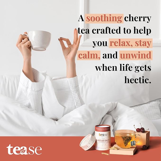 - Blends with Benefits: Not just your ordinary tea for anxiety., Tease Tea Chill Out Cherry blend is designed with your goals in mind. Not only does it offer a refreshing hydration, but it also provides a flavorful infusion of calming and stress support ingredients.