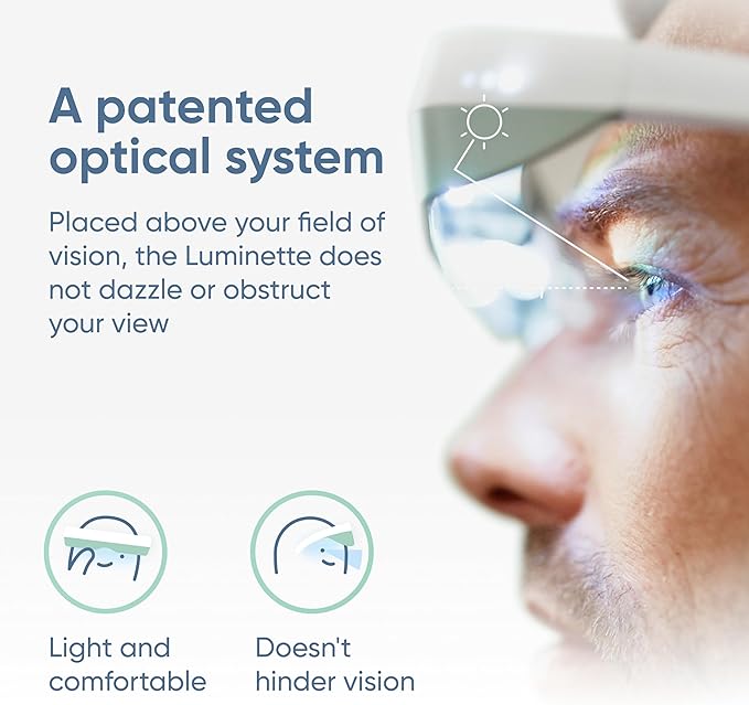 - VERSATILE DESIGN - The Luminette 3’s patented illumination system provides your eyes with an ideal light exposure without interfering with your vision. It is designed to be seamlessly compatible with contact lenses or glasses.