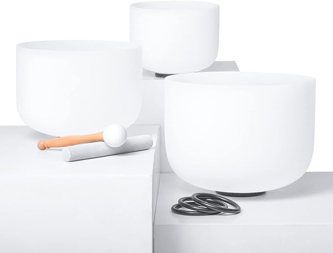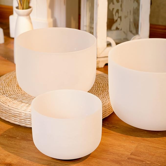 Hye-eun 3pcs Frosted Quartz Crystal Singing Bowls 8-12 Inch E,A,C Note Chakra Sound Bowl 432hz With Carrying Case,for Yoga,Meditation and Sound Healing