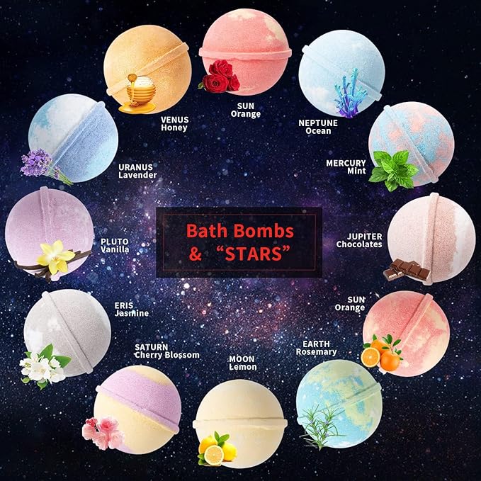 - ๐[Attractive scent]: This bath bomb sets for women gift contains A variety of different fragrances.The shower bombs are rich in essential oils that moisturize and maintain the elasticity of the skin. Nutrient-rich sea salt softens the skin and improves dull complexion.