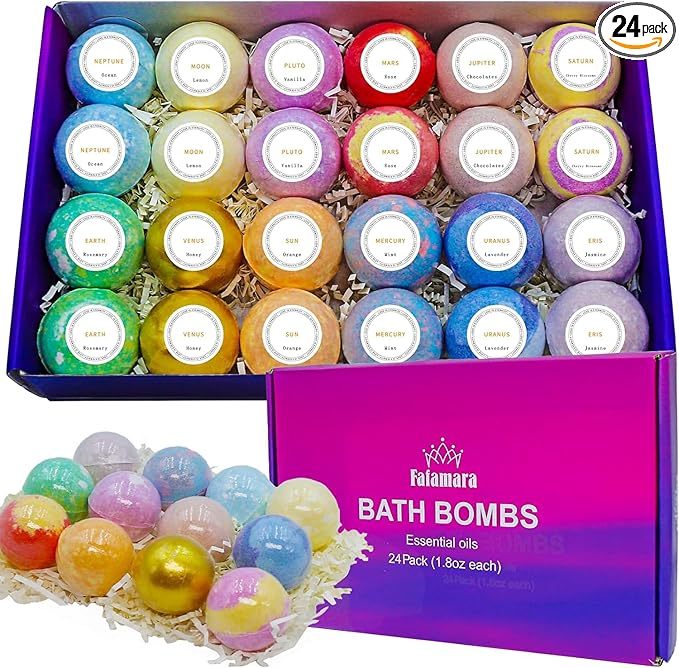 Bath Bombs Gift Set - 24 Pcs Handmade, Natural & Organic Essential Oil Bubble Bath for Women and Girls