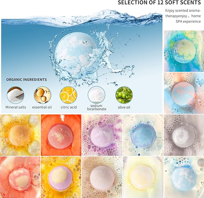 - ๐[Artisan quality]: We refuse to use dry chemicals, and This bath bomb gift set vegetable oils are easily absorbed, helping to deliver other ingredients deep into the skin, leaving all skin types feeling soft and soothed.