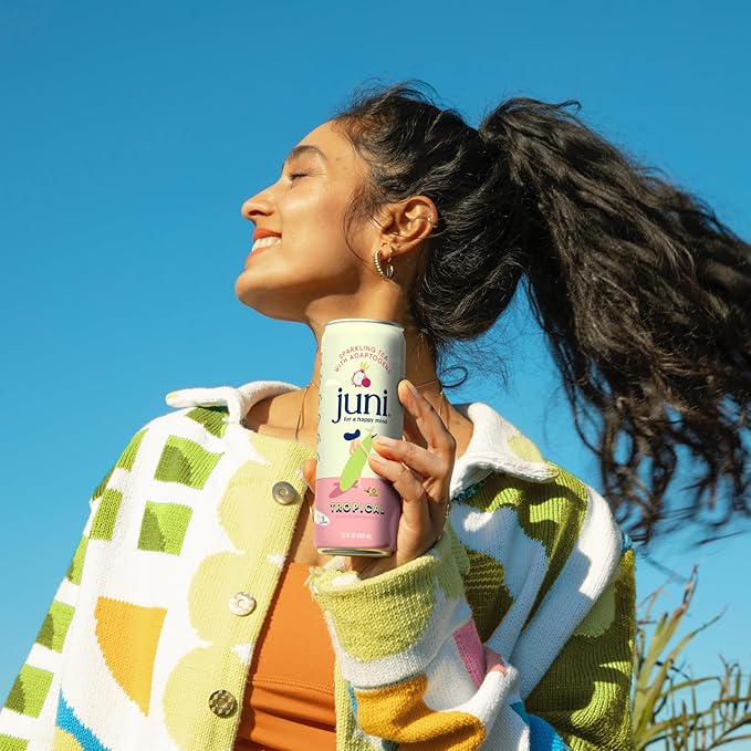 - TROPICAL GREEN TEA: Summer is calling and we have just the answer. Juni sparkling adaptogenic green tea flawlessly blends passion fruit and dragon fruit to transport you to that tropical vacation you’ve been dreaming of.