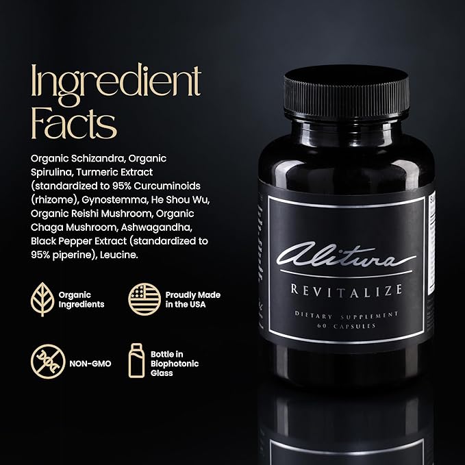 Alitura Revitalize – Organic Ashwagandha & Turmeric Supplement – Natural Energy, Mood & Recovery Support for Men & Women – Adaptogenic Herbs for Daily Wellness – 60 Capsules