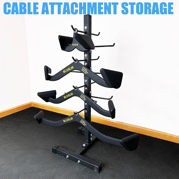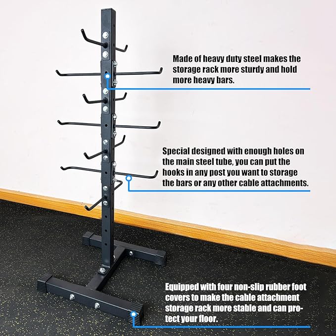 - Multi-Use Storage Rack: Our gym storage rack is a nice storage unit which is perfect for a wide range of cable attachments. Such as Hand Ropes, Lat Bars, D-Handles, Straight Bars, V-Bars and others. This gym rack organizer works well at keeping the fitness bars in place