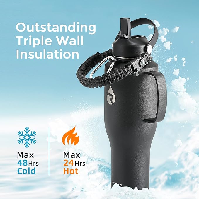 - 100% Satisfaction Support: We offer continuous after-sales service, making sure this bottle sticks around in its top game for years. Package contains 1 x RAYMYLO Car Water Bottle with Handle, 1 x Straw Lid with 2 x Straws & 1 x Straw Brush, 1 x Spout Lid, 1 x Paracord Handle