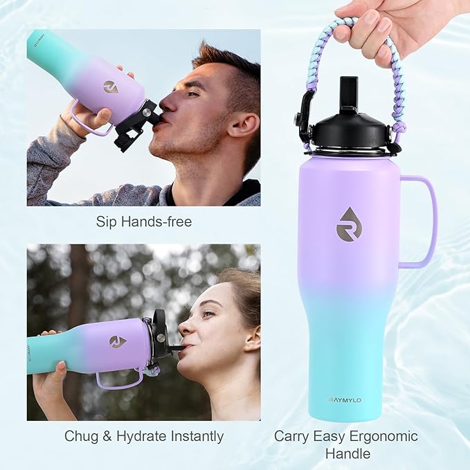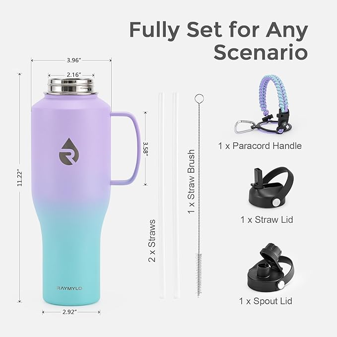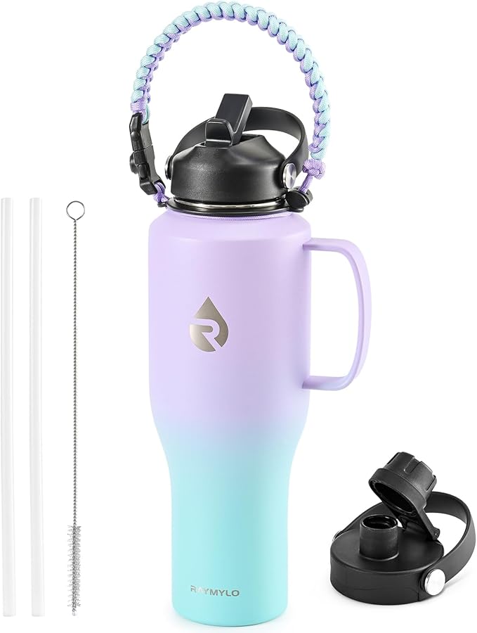 - 100% Satisfaction Support: We offer continuous after-sales service, making sure this bottle sticks around in its top game for years. Package contains 1 x RAYMYLO Car Water Bottle with Handle, 1 x Straw Lid with 2 x Straws & 1 x Straw Brush, 1 x Spout Lid, 1 x Paracord Handle