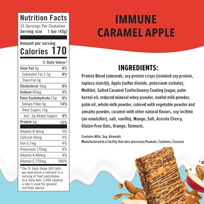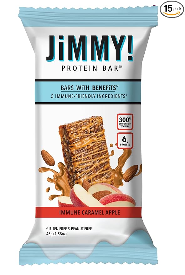 JiMMY! Immune Support Protein Bar, Caramel Apple - 15 Count - Vitamin C Rich, Low Carb, Gluten-Free, Antioxidant Power, Healthy Snack Bar