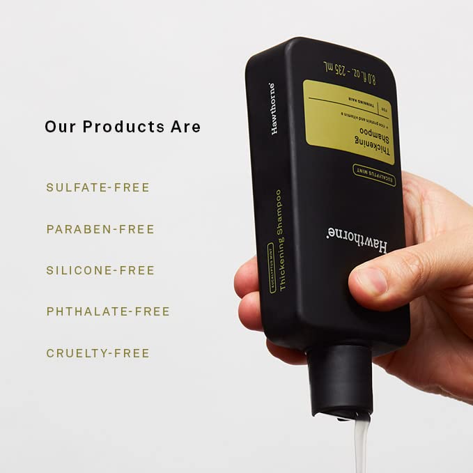 Hawthorne Thickening Shampoo for Thinning Hair. Fight Hair Loss With Rice Protein & Vitamin E Thickening Formula. Eucalyptus Mint Scent. Sulfate Free Mens All Natural Shampoo. 8 fl. oz. 2-Pack.