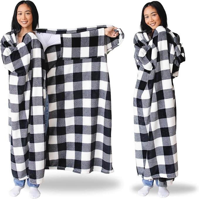 - Share the Gift of Coziness: This white checkered blanket is a blanket with sleeves—great as an office blanket or chair blanket. Perfect for Valentine’s Day, Mother’s Day, Father’s Day, Christmas gifts for men, or heartfelt Thanksgiving gifts!