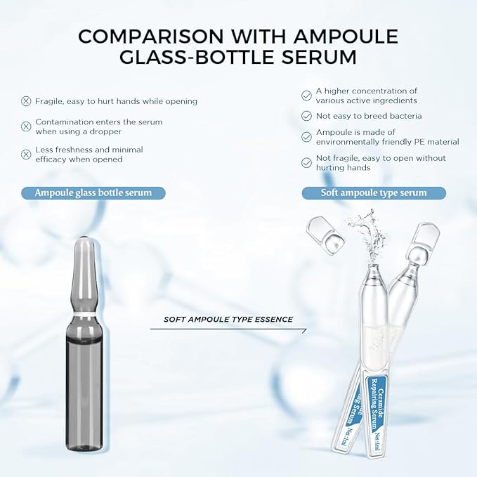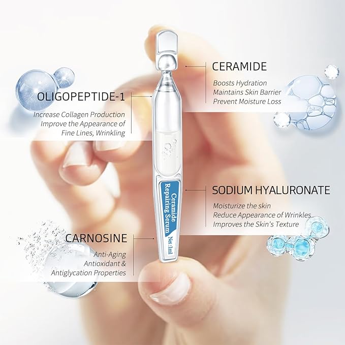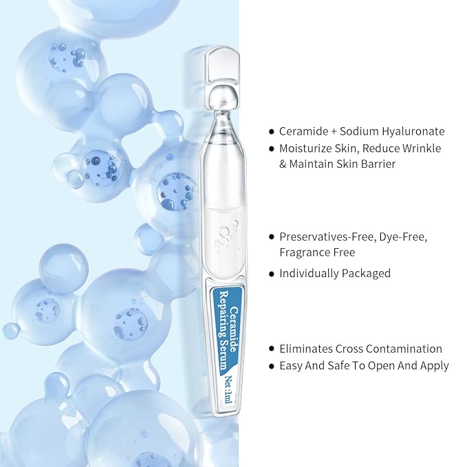 Ceramide Ampoule Serum with Hyaluronic Acid, Peptide, Hydrating & Anti Aging, Skin Barrier Repair Face Serum for Dry and Sensitive Skin, 30 Pcs/Box