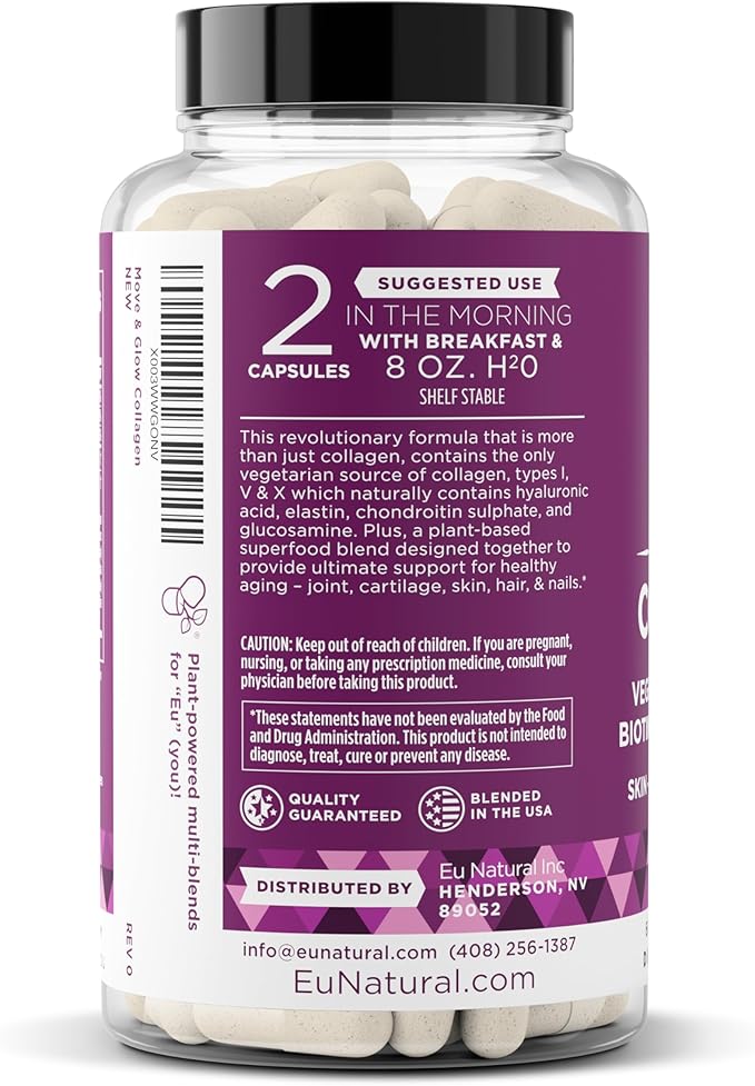 - ULTIMATE VEGETARIAN COLLAGEN COMPLEX: A revolutionary alternative to animal-based collagen, this vegetarian formula utilizes eggshell membrane to provide Types I, V, X & blends it with plant-based collagen-boosting superfoods. Unlike vegan collagen boosters, it uses real collagen to aid collagen synthesis at a cellular level, improving signs of aging + skin elasticity. Experience joint comfort in as little as 3 days while supporting cartilage & tendon health, hydrated skin + strong hair & nails.