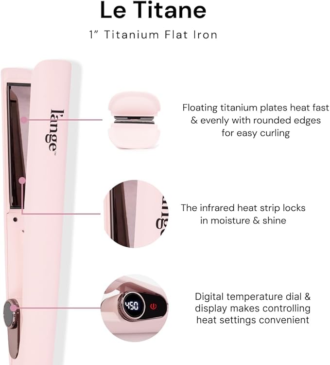 L'ANGE HAIR Le Titane Titanium Flat Iron | Hair Straightener with Curved Edges for Versatile Styling | Dual Voltage Flat Iron with Infrared Heat & Adjustable Temperature | 1" Blush