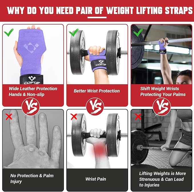 - Enhanced Grip: Professional leather deadlift straps can protect your hands from not only preventing calluses, but also peeling off existing calluses on your hands. Lifting straps take the pressure off your wrists and hands and help you lift heavier weights. More importantly, it improves your ability to exercise larger muscle groups.