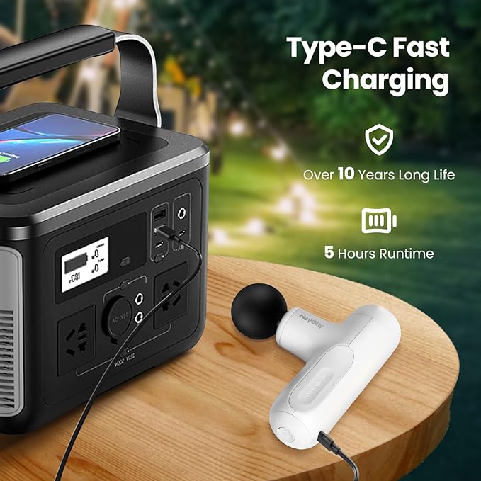 - Long-Lasting Battery: This massager can be used for up to 5 hours continuously. Despite its compact size, its remarkable battery life ensures you never have to worry about running out of power. The battery supports up to 10 years of lifespan, ensuring reliability and durability. For added convenience, it includes a Type-C charging port compatible with 110V to 220V voltages. Keep it powered and ready to use whenever needed.
