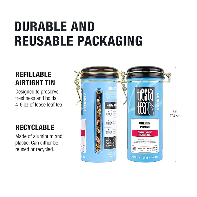 Tiesta Tea - Cherry Punch, Loose Leaf, Sweet Cherry Herbal Drink, Premium Blend, Non-Caffeinated Fruit Tea, Makes Hot or Iced & Up to 50 Cups, 4oz Refillable Tin